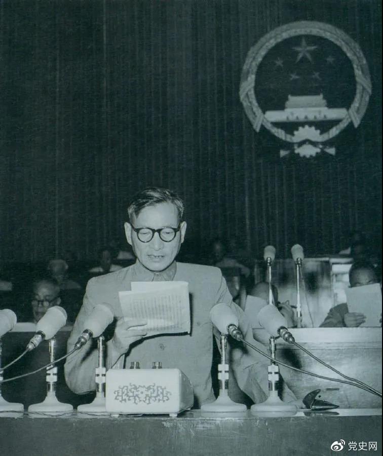 1955年7月,陳云在一屆全國人大二次會議上作堅持和改進糧食統(tǒng)購統(tǒng)銷工作的報告。