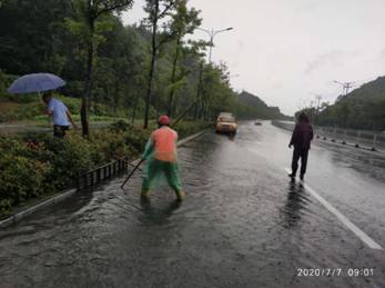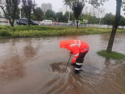 一是隨時關(guān)注天氣情況,通過微信、QQ工作群及時發(fā)布雨情險情,保證公司應(yīng)急隊伍在關(guān)鍵時候能拿得出;二是及時響應(yīng)暴雨紅色預(yù)警信號,迅速啟動應(yīng)急預(yù)案,實行24小時值班制度,加強中心城區(qū)市政園林基礎(chǔ)設(shè)施應(yīng)急防澇工作。三是落實應(yīng)急隊伍巡查制度,做好雨前、雨中、雨后的巡查、檢查工作,共出動6批應(yīng)急隊伍共25名應(yīng)急隊員、7臺搶險車輛、1臺高空作業(yè)車上路巡查,發(fā)現(xiàn)積水處立即打開井蓋進行人工助排,并派專人值守,避免發(fā)生事故。三是公司分管副總經(jīng)理