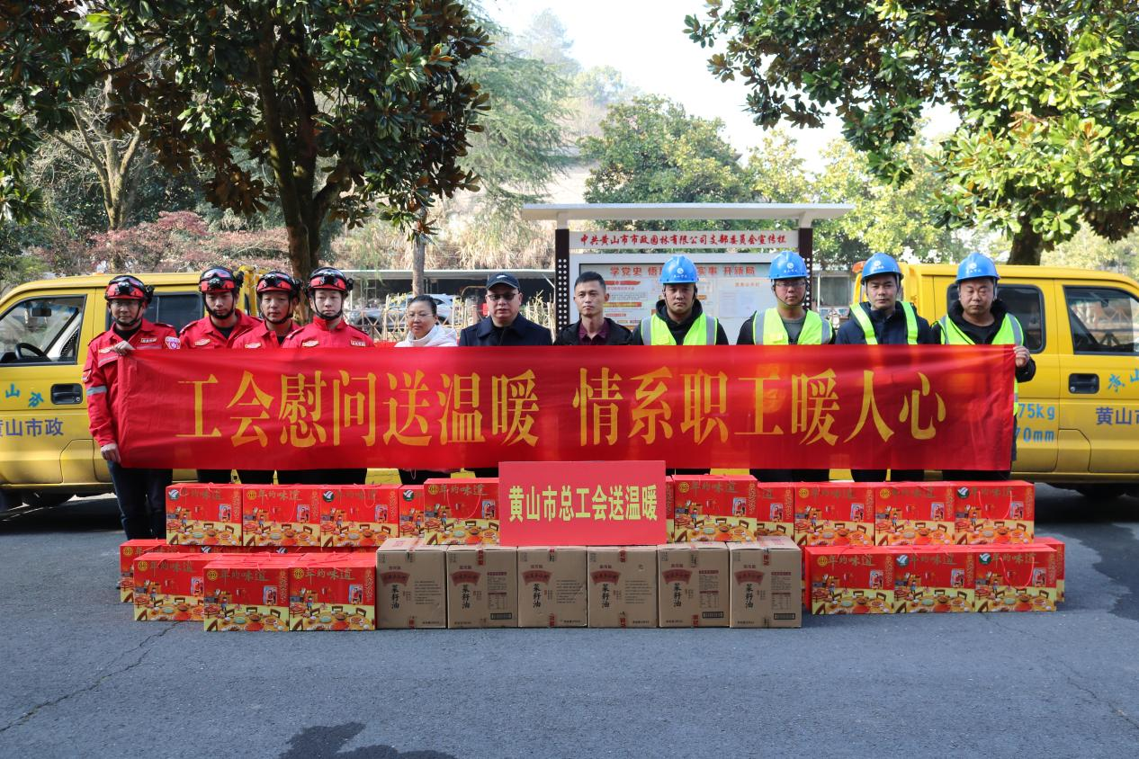近日,黃山市總工會(huì)一行赴市政園林公司開(kāi)展“春節(jié)送溫暖”慰問(wèn)活動(dòng),為市政園林一線職工送來(lái)了米油等慰問(wèn)品,并向一線職工表示衷心的感謝和誠(chéng)摯的問(wèn)候。