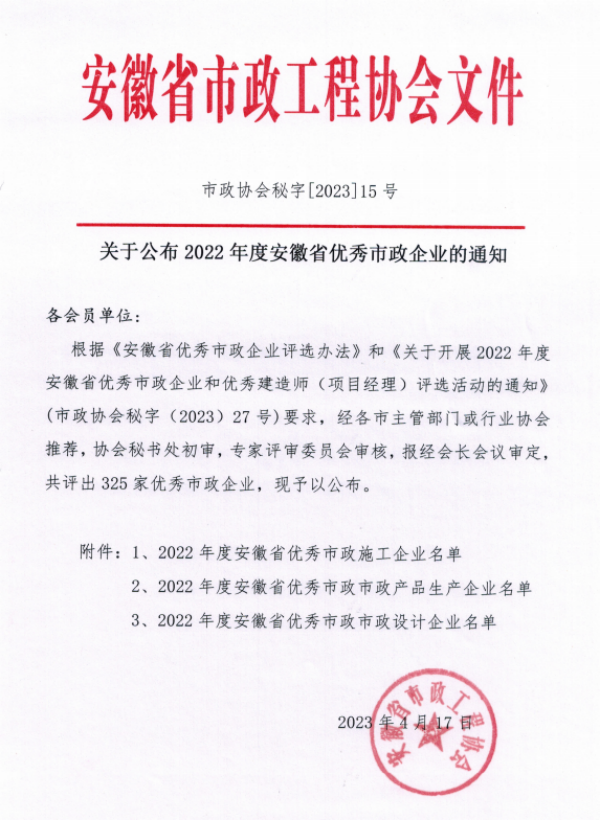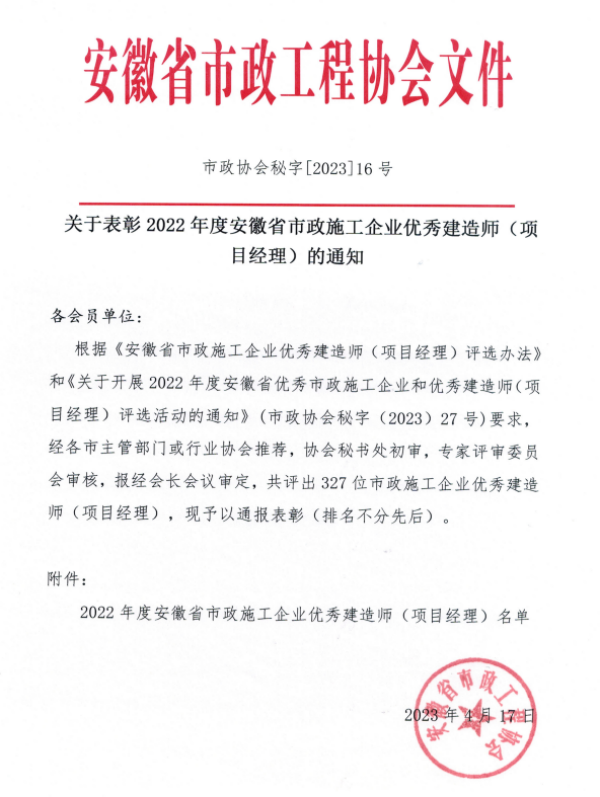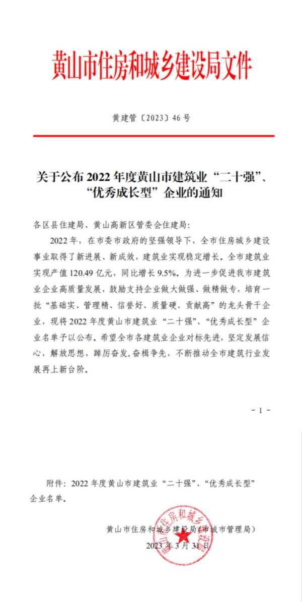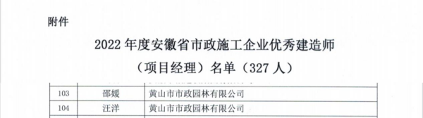 近日,市政園林公司榮膺2022年度安徽省優(yōu)秀市政施工企業(yè),2022年度黃山市建筑業(yè)“優(yōu)秀成長型”企業(yè),兩名項(xiàng)目經(jīng)理獲評2022年度安徽省市政施工企業(yè)優(yōu)秀建造師。