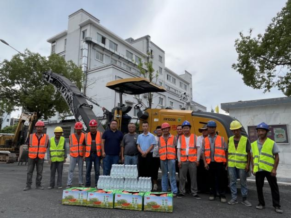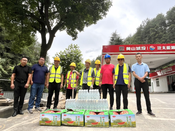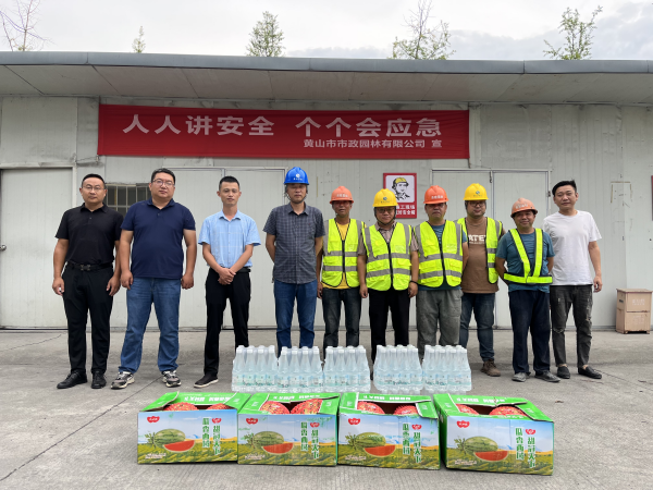 帶著對一線員工的牽掛,7月18日,市政園林公司領導班子帶隊,慰問組一行先后前往花山路瀝青路面養(yǎng)護現(xiàn)場、瀝青混凝土生產(chǎn)廠區(qū)、休寧縣學府路、新安北路擋土墻重建項目,為高溫作業(yè)、露天施工一線施工人員送上西瓜、礦泉水等防暑降溫物品和防暑藥品。同時,感謝他們的辛勤付出,并叮囑他們要注意身體,在高溫作業(yè)時要加強防暑降溫工作,要規(guī)范操作,加強自我保護,把安全問題放首位,以確保項目安全、優(yōu)質(zhì)、高效推進。