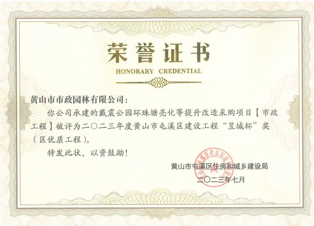 市政園林公司多項(xiàng)工程榮獲“昱城杯”